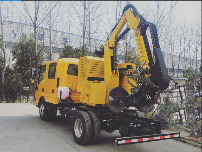 割灌臂 | 全自動三節折疊臂,一節伸縮臂,具有3個液壓油缸,底盤可在車廂板內360°無障礙旋轉,能滿足不同角度的修割,可以左右切換作業。刀盤公轉同時刀片自轉 |